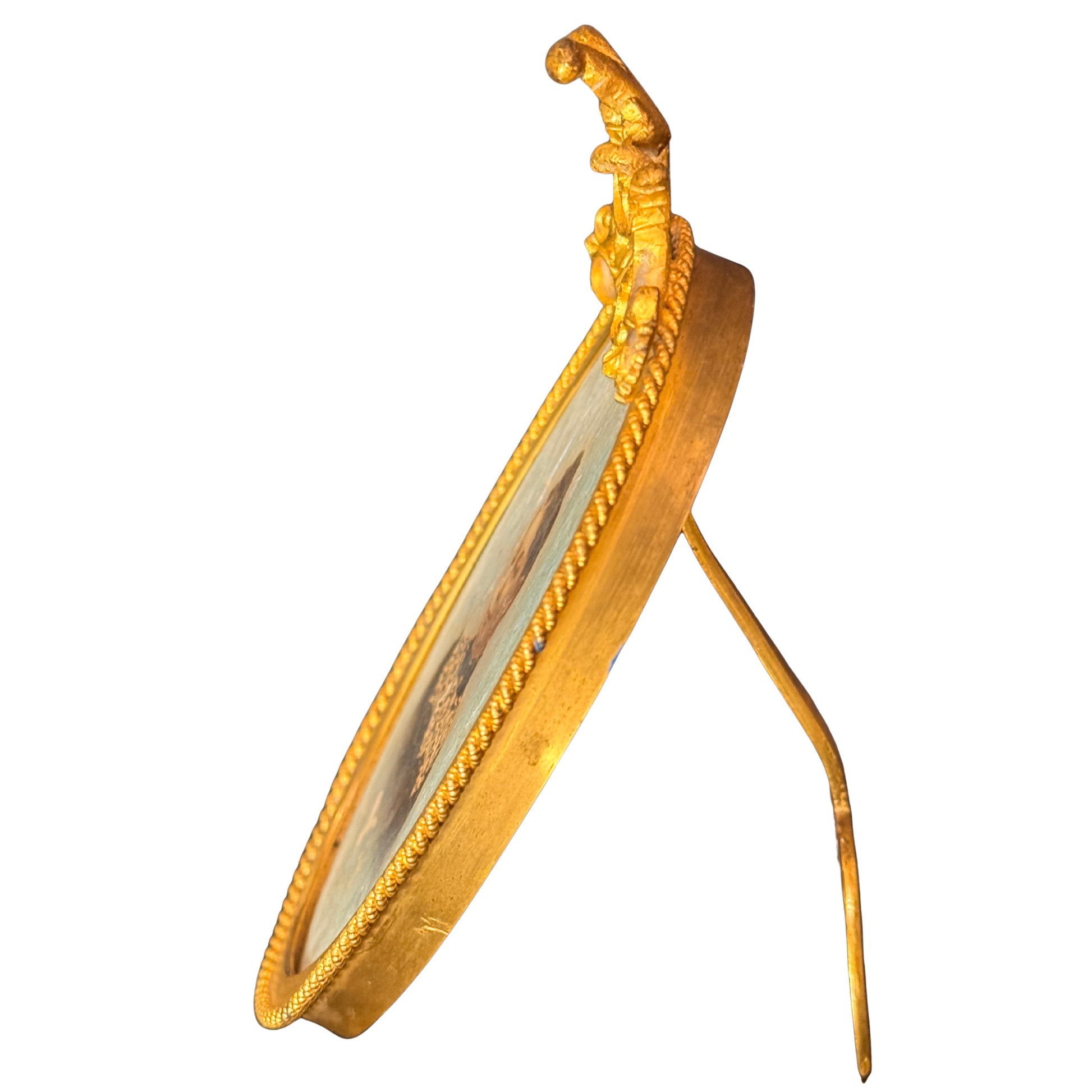 19th Century Mini Portrait of Woman in Dore Bronze Frame with kickstand